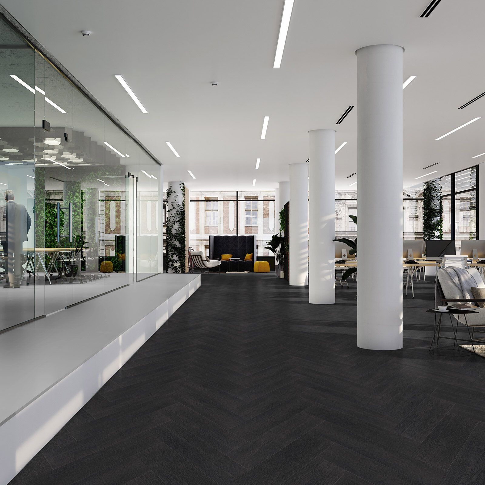 De VivaFloors 6930 is een bijzondere PVC vloer. Waarom is deze vloer zo bijzonder? Dit komt door de unieke combinatie tussen een zwarte kleur en het levendige motief van visgraat. Deze combinatie komt niet vaak voor. Maar kan wel een prachtige basis vormen voor een klassiek en modern interieur!