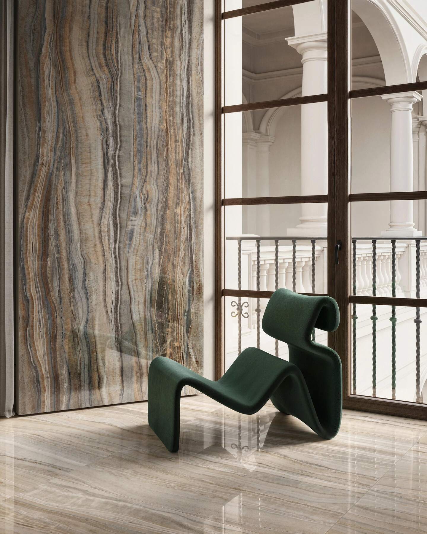 - Tijdloos onyxpatroon. De subtiele adering en het zachte kleurverloop zorgen voor een levendige maar nooit drukke uitstraling – perfect voor wie een evenwichtig en stijlvol resultaat zoekt.